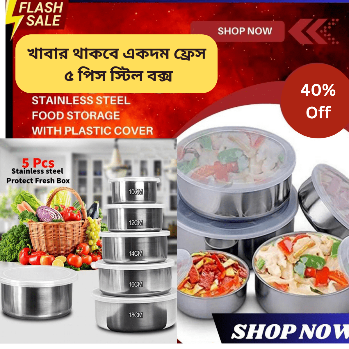 স্টিল বক্স ৫ পিসের Stainless Steel Food Box with Altra Plastic Lids