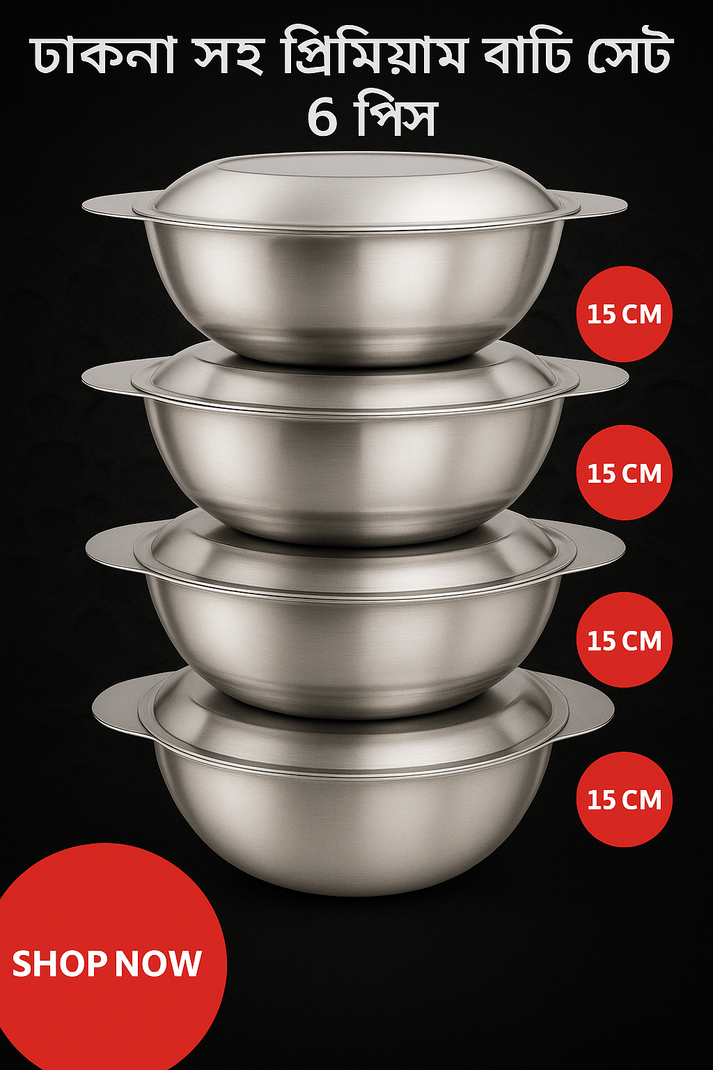 1. ঢাকনা সহ Stainless Steel Food with Steel Lids Kan Bati 4 pcs set 15 CM