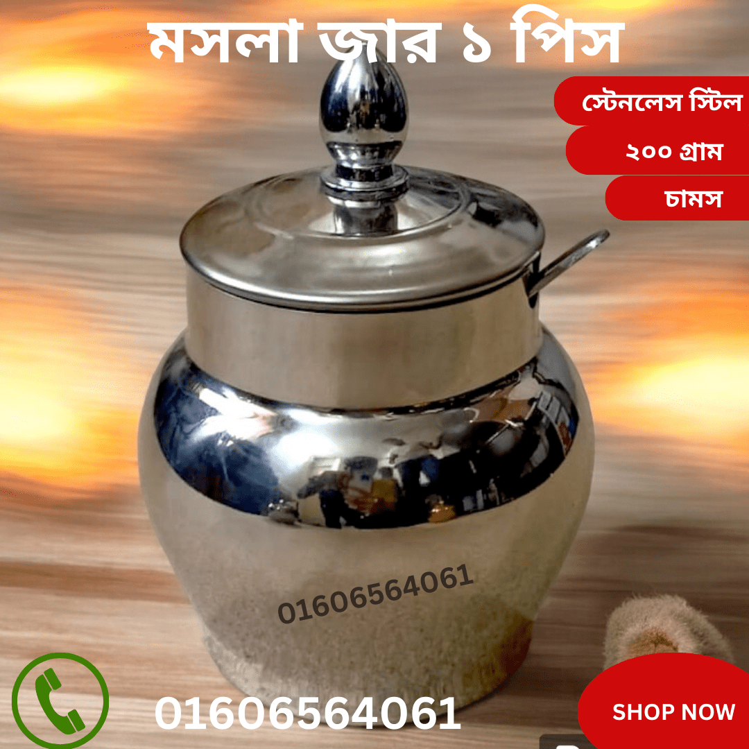 1 Steel Silver color pineapple Masala Box , 1 spoon